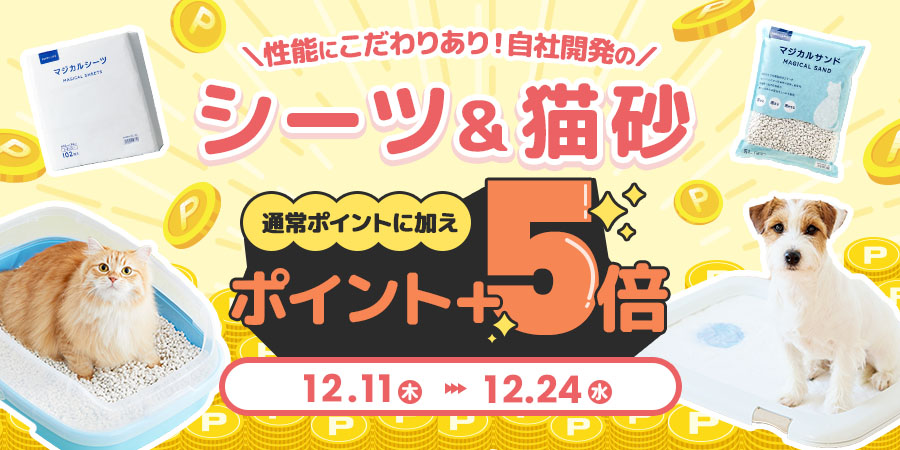 【年末に向けてのストックにおすすめ】性能にこだわりあり!自社開発のシーツ&猫砂がポイント+5倍!