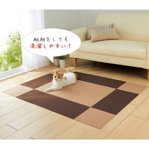 わんにゃんに優しい肌触りの糸で作られたタイルマット。是非極上の質感をお試しください。洗濯機で洗えちゃうのもポイントです。