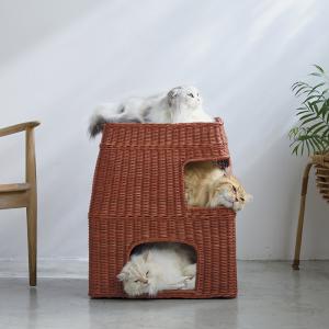 愛猫が吸い込まれるたまご型の隠れ家ラタンベッド。
