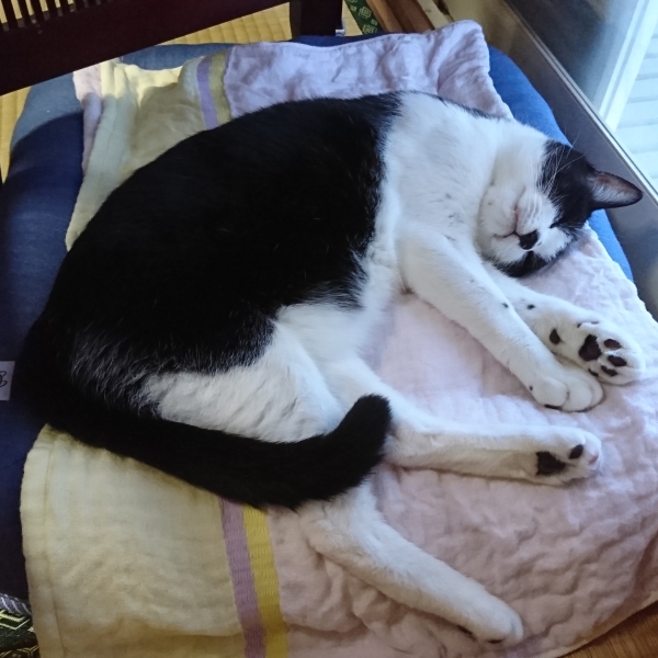 寝心地いいらしく、1日中乗っています。クリーム色のフワフワ部分がマシュマロみたいで気持ちいいです。私が使いたいくらいです。リバーシブルなので1年中使えますね。毛がついてもコロコロでキレイに取れます。丸...