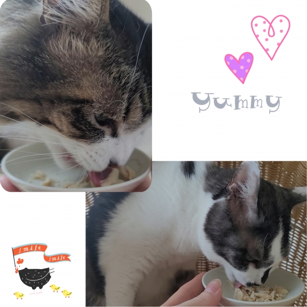 普段から鶏肉が大好物のわが家の猫達は商品のパッケージを見た瞬間おねだりを始めていました。食べっぷりも良く、あっと言う間に平らげてしまい、大変満足している様子でした。