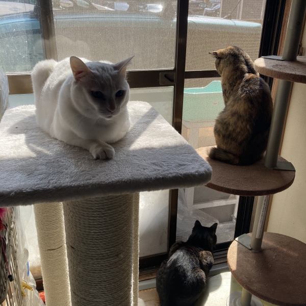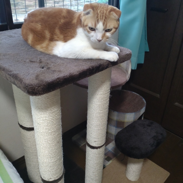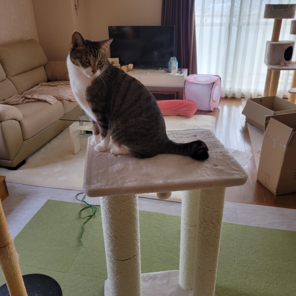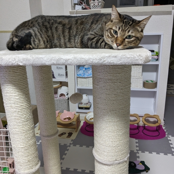 3台目です。家族内ではペピイ台と呼んでおりなくてはならないものです。爪研ぎしたり、日向ぼっこしたり大人気です。お値段は高くなってしまいましたが、人間の物を節約してでも買ってあげたい一品になりました。
