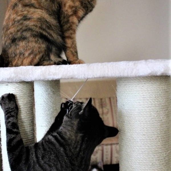 爪とぎタワーを組み立てた途端に、愛猫のななちゃん(1才)は爪を研いだり、飛び乗って、ゆらゆら揺れてるボールで遊んだりとても楽しそうです。購入して良かったです。