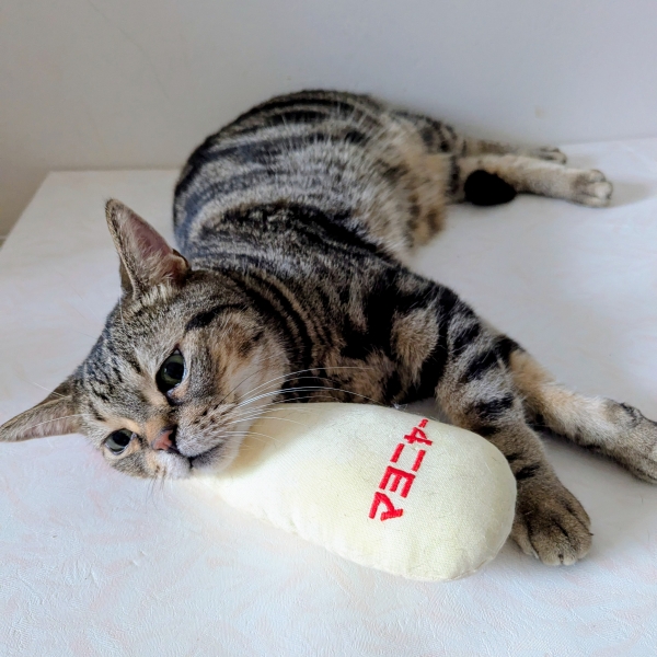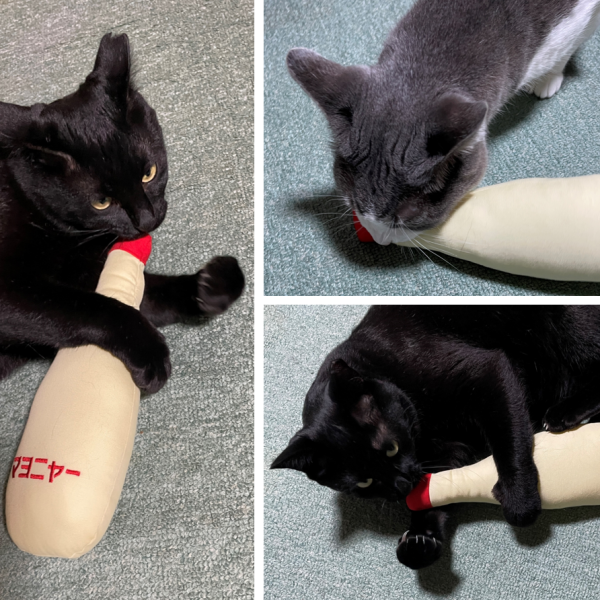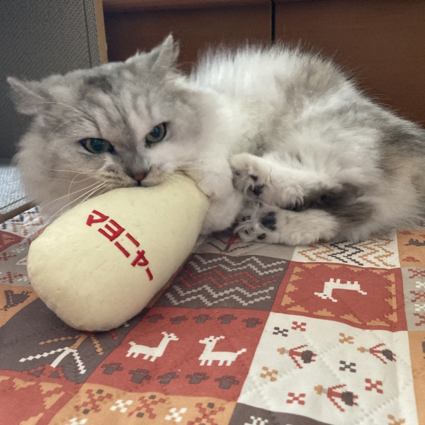 SNSでこの商品を見て一目惚れして注文しました。実物は期待以上の可愛さで、触り心地も良く、刺繍のマヨニャーの文字もユーモラス!丁寧な縫製と、使用しているまたたびが国産なのもポイント高いです。我が家の猫...