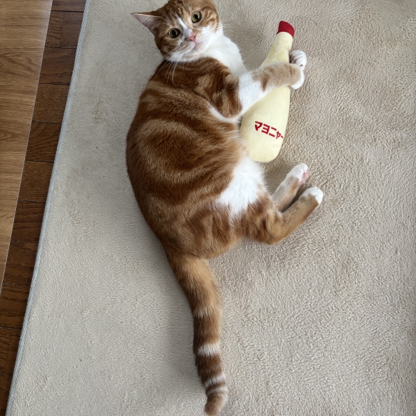 最近猫ちゃんが、入退院を繰り返しており、遊ぶことができず、ちょっとお値段が高いけど、落ち着いたタイミングで、けりマヨで遊びました。少しはストレス発散できたかな、と。