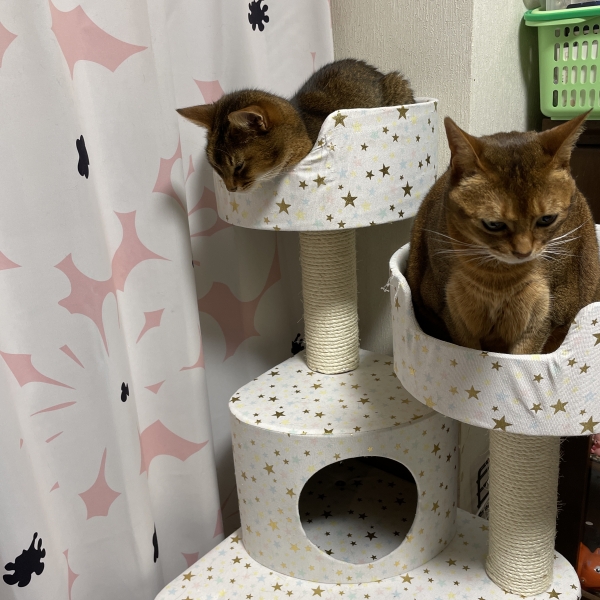 タワーを新調しました!みんにゃのお気に入りです!(*^^*)大きさも丁度よく、頑丈で、組み立ても簡単にできました。多頭飼いには最高にゃ(=^ェ^=)