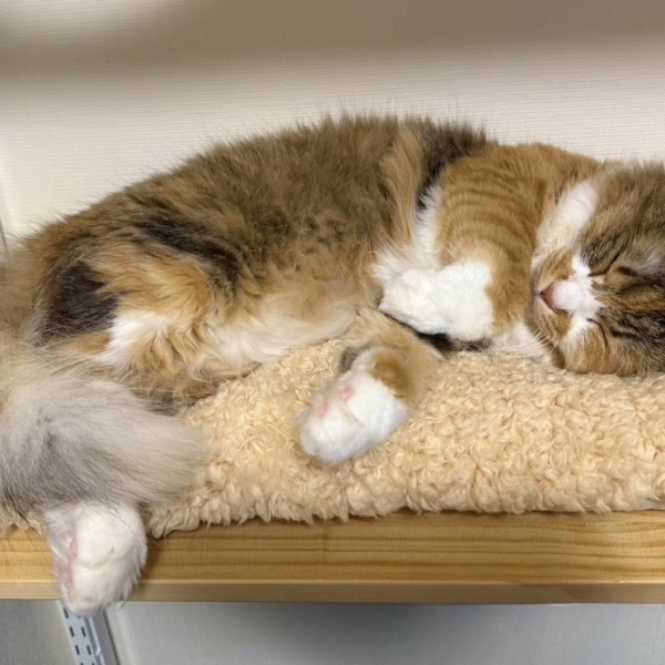 リバーシブルなのがすごくいいです。爽やかな柄のさらっとした面にしていましたが、肌寒くなったのでモフモフの面に変えたら、うっとりした顔で気持ち良さそうに寝転がってくれました。厚みがあるので、棚板の硬い冷...