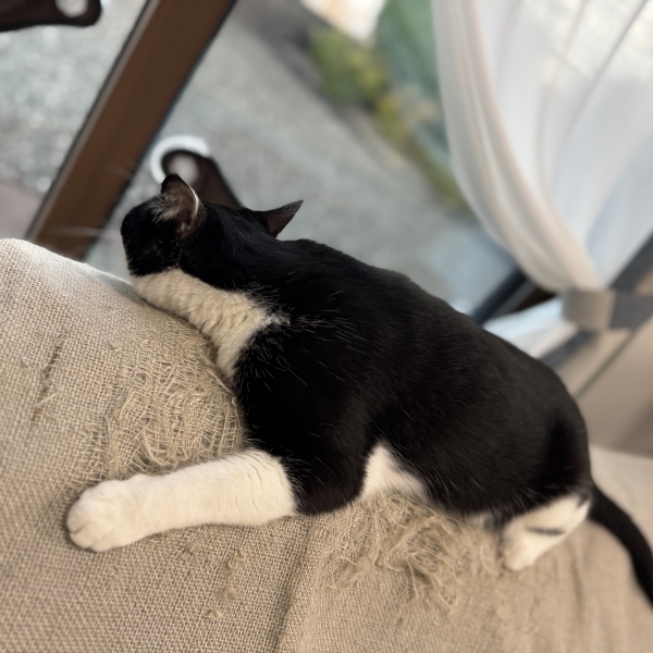 ソファが大好きでよく背もたれにいるんですが、爪とぎも激しく困っていました。背もたれのサイズにもピッタリで猫達も違和感なく受け入れ楽しそうにバリバリしています。私も背中が気になりません。