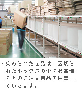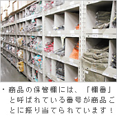 ここでは商品の保管、検品、出荷業務、返品処理などを行っています。