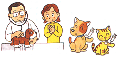ほんとに最近では、人獣共通感染症=ズーノーシス という言葉がよく使われるようになりました。 人獣共通感染症に皆さんが関心をもち、「動物から移る病気」についての知識や予防法を知ってもらい、正しく人獣共通感染症について理解してもらうことは大変良いことなのですが、犬や猫は、人間に移る病気を持っているかもしれないから心配だわ…」、といった一部分だけが注目されてしまうことは、犬や猫の飼い主にとっても、社会にとっても決してよいことではありません。 「うちのワンちゃんや猫ちゃんは大丈夫かしら?家族の人に病気をうつしたりしないかしら?」と心配したり不安になる前に以下のことを守り実行してください。以前にも紹介した内容ですが、皆さんから何度でも繰り返しご家族の方や子供たちにも伝えてあげてくださいね。 |