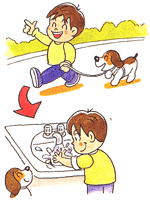 実は、おにいちゃんと一緒にお友達の家に遊びに行ったんだけど、その友達のお母さんに「ワンちゃんは家の中に入っちゃダメよ。」って言われて撫でてもくれなかったしお部屋に入れてもらえなかったんだ…。 |