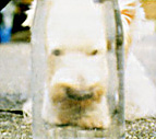 ユニーク表情を狙うならガラス越し撮ってみるのも一案です。例えば、耐熱ガラスのボウルなどを使えば、ガラスの厚みで面白い表現ができます。なるべく底の丸いものを選びましょう。円柱状のペットボトルの中に水を入れて、ボトル越しに撮影するのもいいかも。