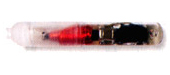 マイクロチップは皮下に埋め込む、固有の標識番号をもったICチップです。長さは約11mm、太さ2mmのカプセル状で、これをインジェクターとよばれる挿入機器で、首の後ろ部分の皮下に埋め込みます。皮下に埋め込まれたマイクロチップの標識番号は「リーダー」と呼ばれる機器を使って読み取り、個体識別に用いられます。