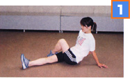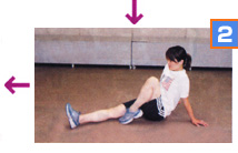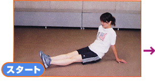両脚を前に伸ばして座る。両手で床をささえて体を後ろへ軽くそらす |