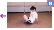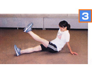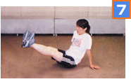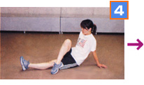 | 両脚を揃えたまま上へ。なるべく高く上げてV字をめざそう | 両脚を揃えたまま右へチョン | ||