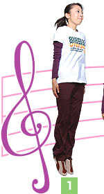 ラインダンスのように、片脚を上げ下げしながら行う連続ジャンプです。両手を広げて胸を張った姿勢を保つようにしましょう。