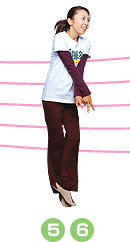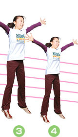 チョキのポーズで2回ジャンプ。軽く腰をかがめながら両手両脚を前で交差