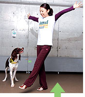 上下をくり返している間に、ワンちゃんがジャンプできるよう導きます。おすわりか待てをさせておき、人が跳び始めてから「ジャンプ」と指示。おやつやフードを手に持って誘導してもいいでしょう。(アドバイス by ドッグトレーニング・インストラクター中塚圭子さん) ![]()