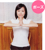 両手を胸の前で合掌。腕は肩の高さに上げ、胸から離す。この姿勢で左右から強く力を加える。5秒間キープ。 |