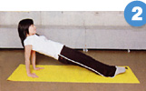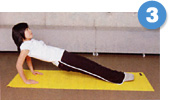 足を前に伸ばし、体を一直線に。腹筋と背筋も使うのでエクササイズ効果バツグン。 |