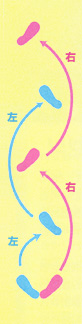 ★4拍歩き+片足上げ下ろしの8拍で1セットこれを4回くり返す