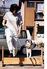 何も器具がないときには、飼い主さんが自分の片足を前に出してあげて跳ばせることもできます。