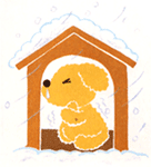 急激な冷え込みなど寒暖の差が大きいと、特に注意が必要です。(*慢性の心不全をもつ犬の場合はセキが激しくなったり、時には肺水腫をおこしやすくなることもあります)外で飼っている場合なら、玄関に入れるなどもよい方法です。犬小屋・寝床の掃除や虫干しも比較的暖かい日を選んで、忘れずにしておきましょう。また、屋外に犬小屋や寝床を用意している場合は日当たりの良い場所に移動したり、入り口を仕切りで覆ったりして、冷たい風や雪がふきこまない工夫をしておきましょう。古くなった毛布や敷物などを、咬んでしまったり、かじって飲み込んだりしないようであれば、犬小屋の中に入れてあげてください。室内で飼われている場合も、エアコンや暖房器具の温度調節には注意しましょう。暖房を切った夜間との温度差が大きいと、ストレスの原因にもなりますし、散歩などで屋外に出たときの極端な温度差もよくありません。高齢の犬や猫、あるいは、慢性の疾患をもつ場合は、特に注意が必要です。 |