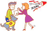 ●聴導犬…耳の不自由な人に音を知らせます。お湯の沸く音、ドアのチャイム、電話やFAX、