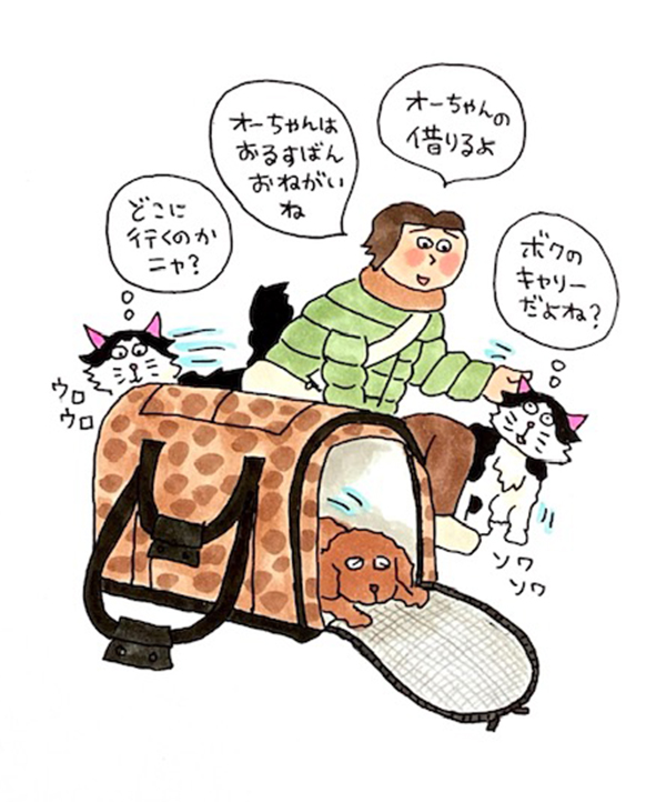 オーちゃん、お留守番ありがとう。キャリーを借りたので、何が起きたのか心配させちゃったね。元気な頃のダイダイなら体重が8キロ近くあって猫用キャリーには入らなかったのに、4キロ台まで痩せて、王太郎のキャリーがちょうど良くなってしまったのだ。