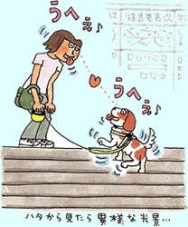 でも今日は比較的、調子が良さそう。散歩中、駅前の階段をヨッコラショと昇り、嬉しそうに「うへぇ♪」と笑った。思わずカンザワもバニラの顔マネで「うへへぇ♪」と笑い返す。(犬&犬バカ…白昼堂々、愛の交歓?)
