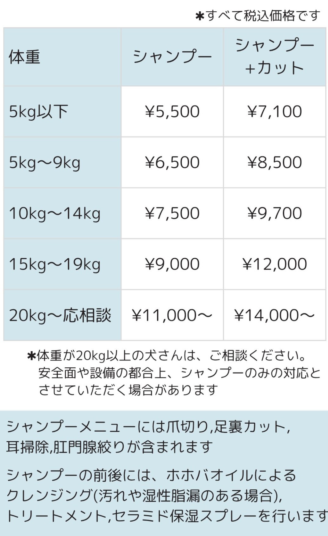 生活の質を維持する目的で、動物の様子をみながら手早く安全に行いますので、基本的なカットスタイルとなります。デザインカットやカラー等はお受けしておりません。