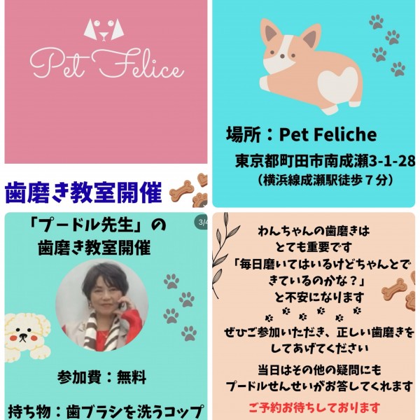 ・月に1度ほど歯磨き教室・ドッグマッサ-ジ等のセミナ-を専門の講師の先生をお呼びして無料で開催しております