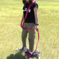 肩掛けして両手が使える。首輪&ハーネスのダブル使いですっぽ抜け防止にも。
