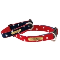 元気なデザインのスターデニムシリーズの迷子札付き首輪。