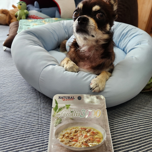 水分たっぷりでサラサラしたチキンがお気に入りの愛犬は早く食べたくて台に置く前から食べようとします。免疫細胞に直接とどくフェカリス菌等を、ちゃんと吸収できているようで体調も安定していて嬉しいです。