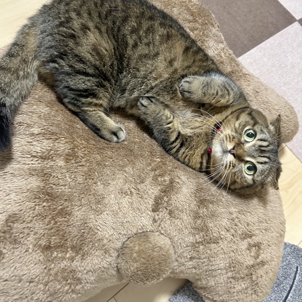 ふかふかで気持ち良いです。パンダの方が可愛いと思いましたが、汚れが目立つと思い、クマタイプを選びました。クマと名付けたキジトラが乗ってくれて、本当に良かったです。