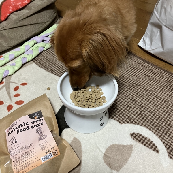 最近、気温が高いからか、お散歩時に少し緩めのうんちをすることが多いので、このフードをお試しで食べさせてみました。粒も小さく、食べやすいようで、ペロッと完食しました。薬膳理論に基づいているとのことなので...