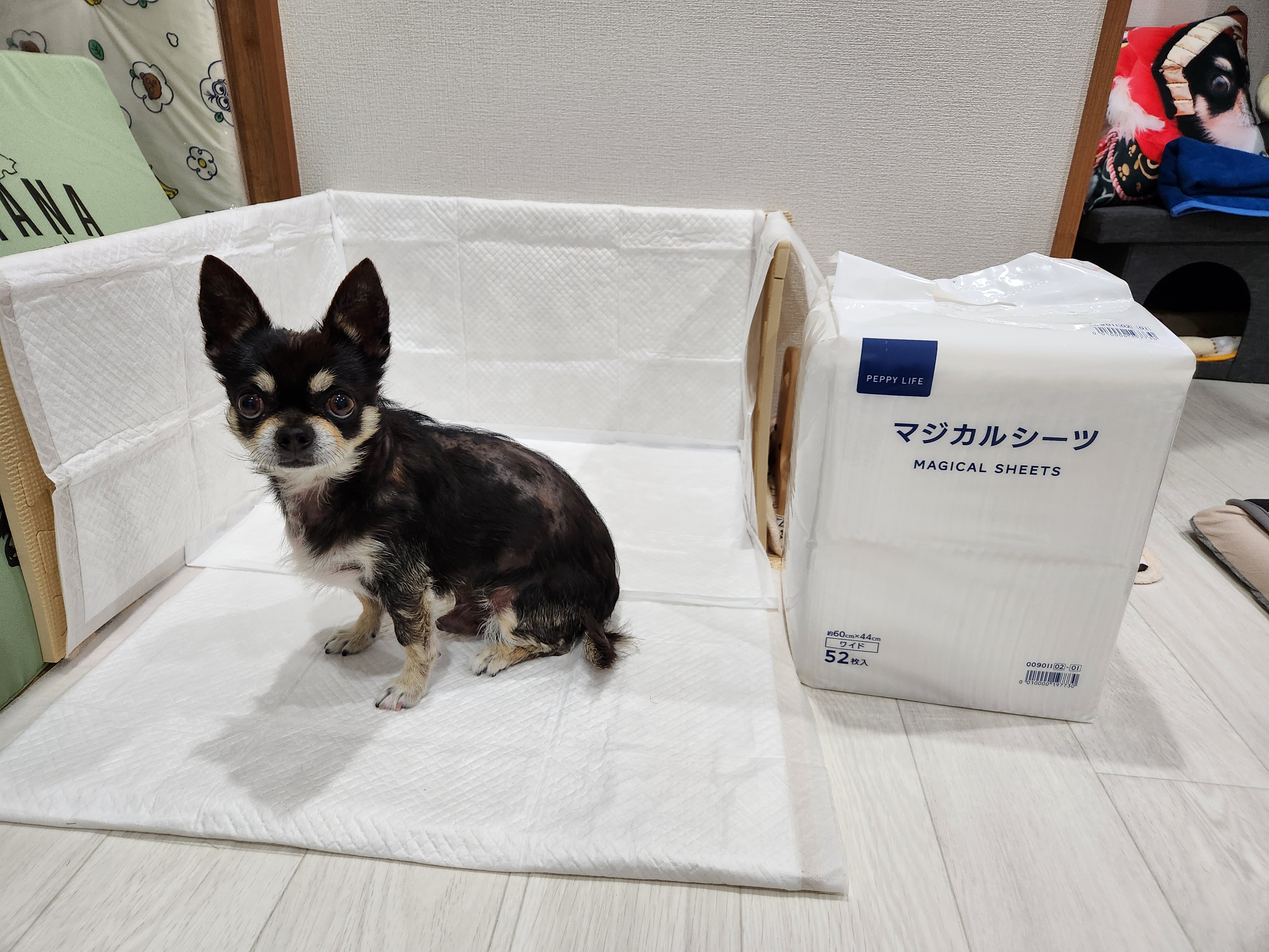 タイムセールをしていたので、ストック用にまとめて購入しました。ミニチュアダックスですが、このシート2枚分をトイレとして使っています。
