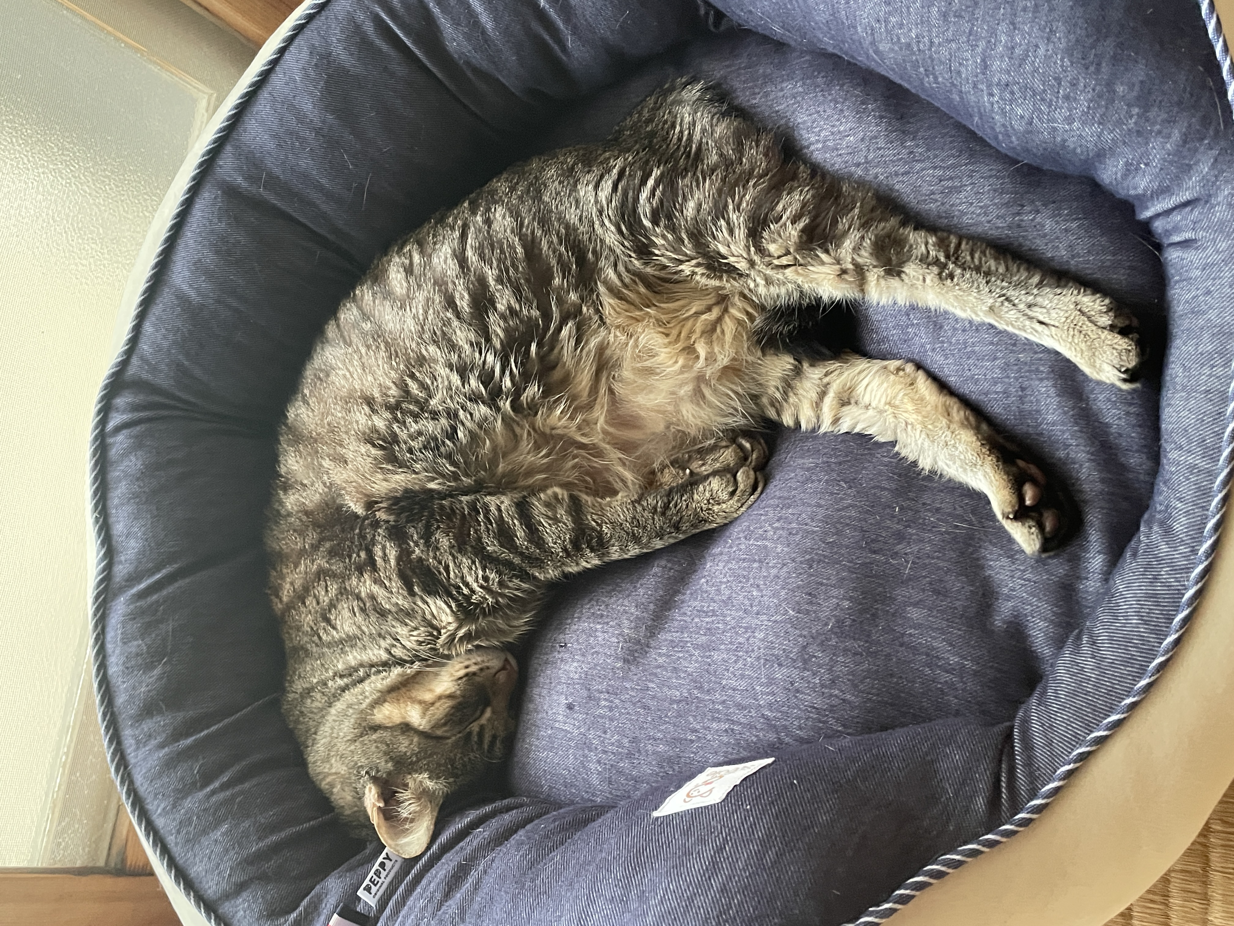 最初は、ちょっと警戒していましたがご覧のとおり、お気に入りのベッドになりました❤︎