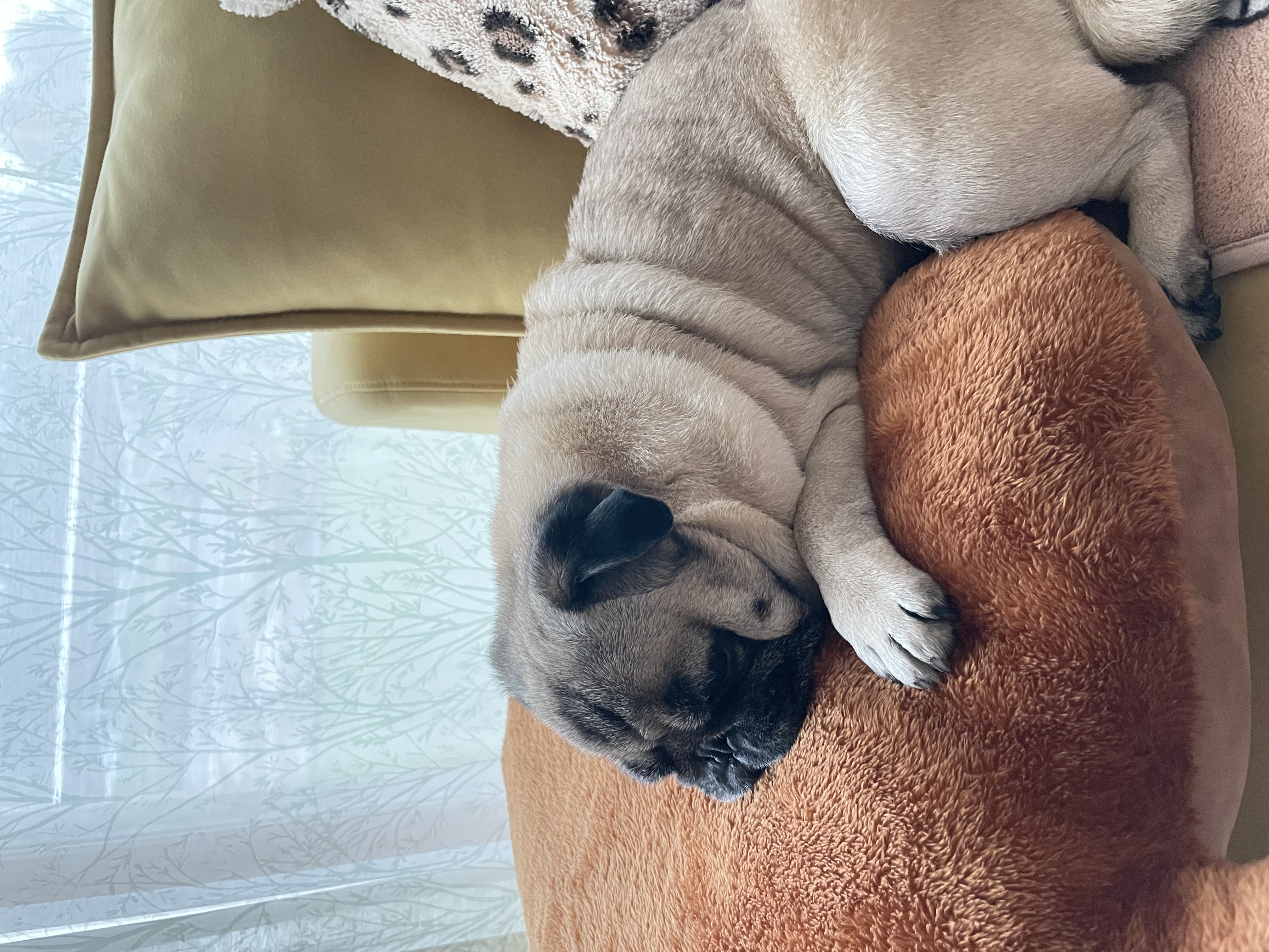 マロンちゃんはベッドが来たらすぐに寝ました。気に入ったみたいです。思ったよりボリュームがあって下手らず弾力があって長持ちしそうです。気持ち良さそうです。
