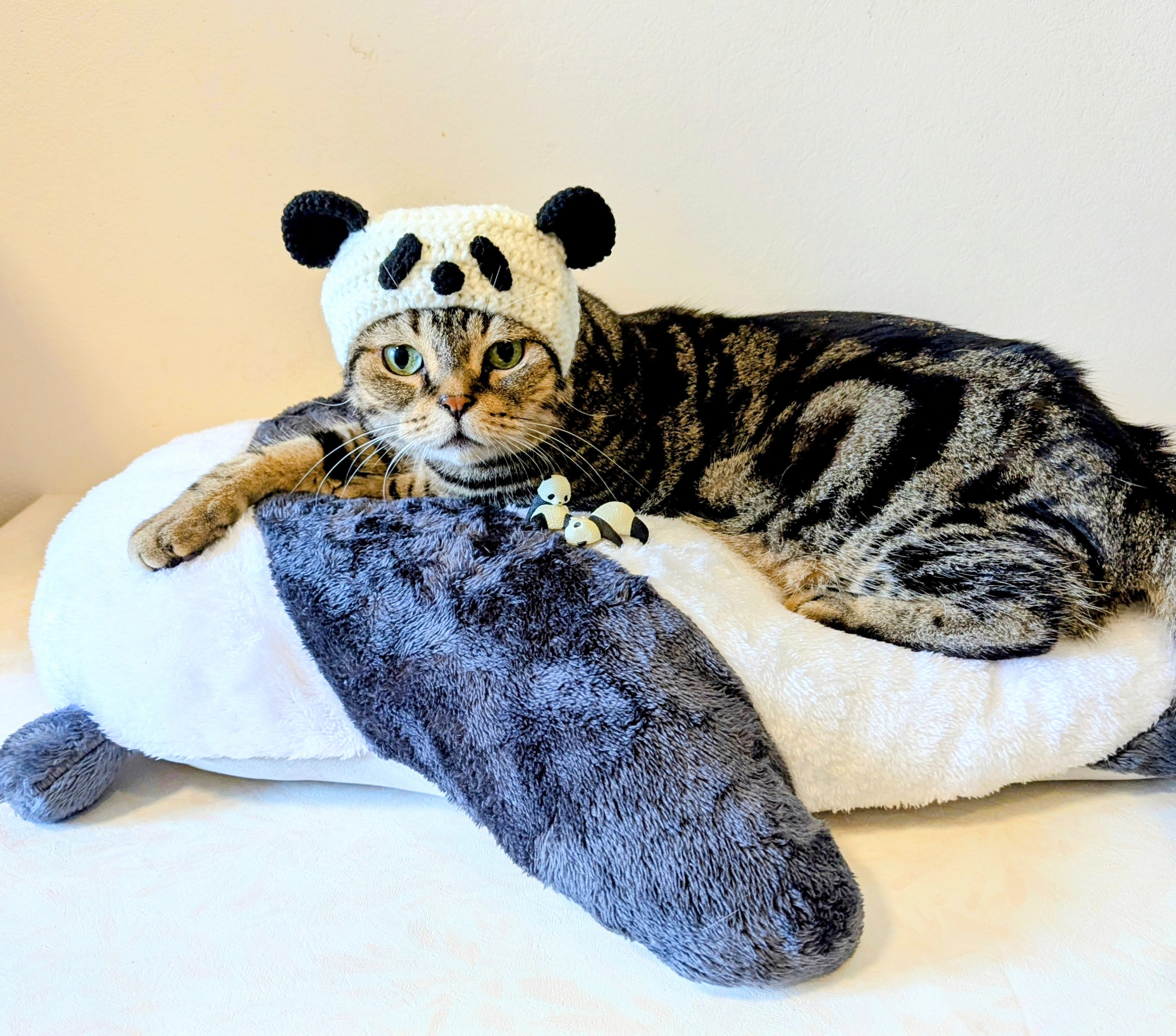 ふかふかで気持ち良いです。パンダの方が可愛いと思いましたが、汚れが目立つと思い、クマタイプを選びました。クマと名付けたキジトラが乗ってくれて、本当に良かったです。