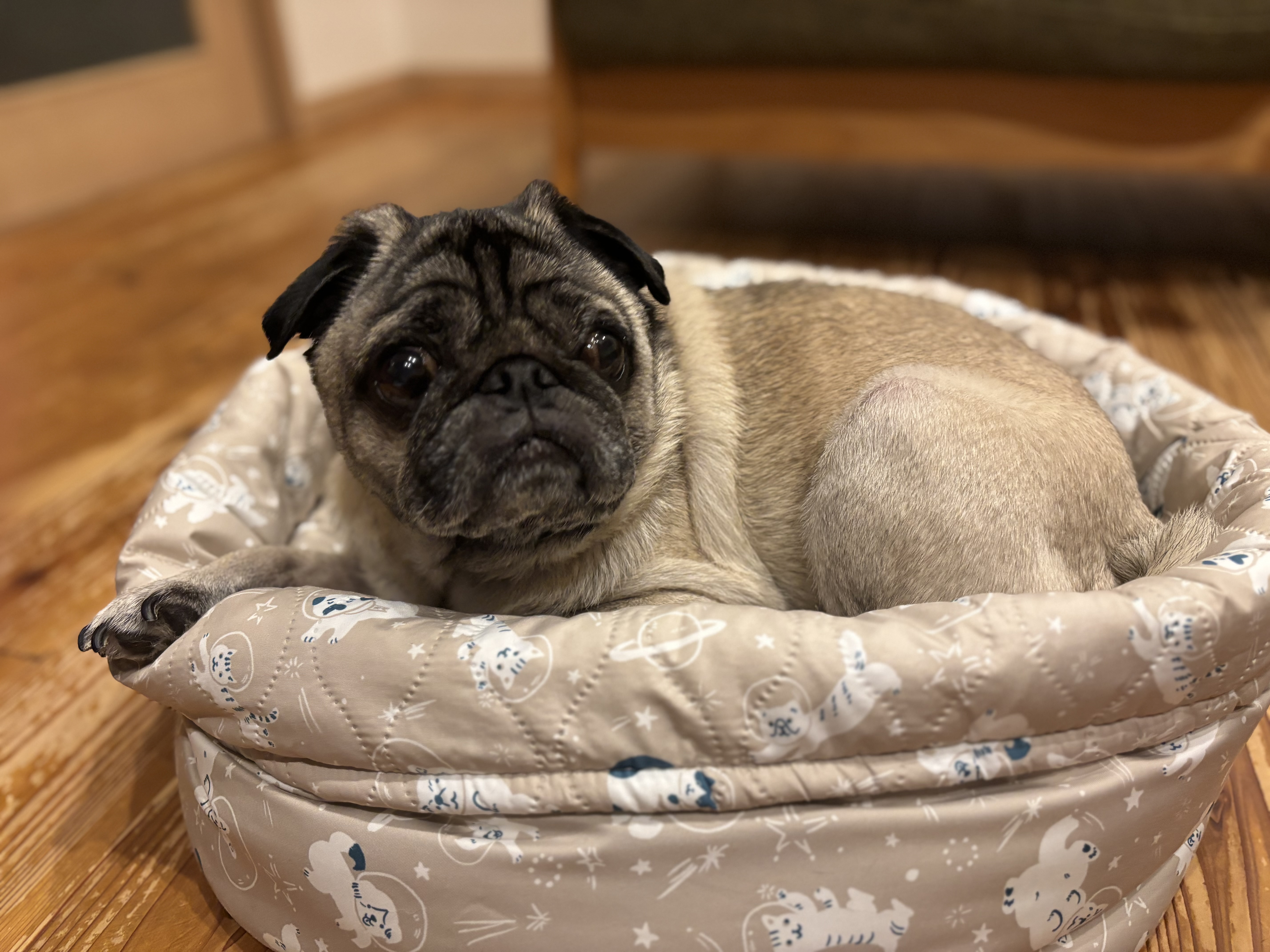 パグは抜け毛が多いので、普通のベッドはコロコロを何度しても取りきれないのでとても良いです
