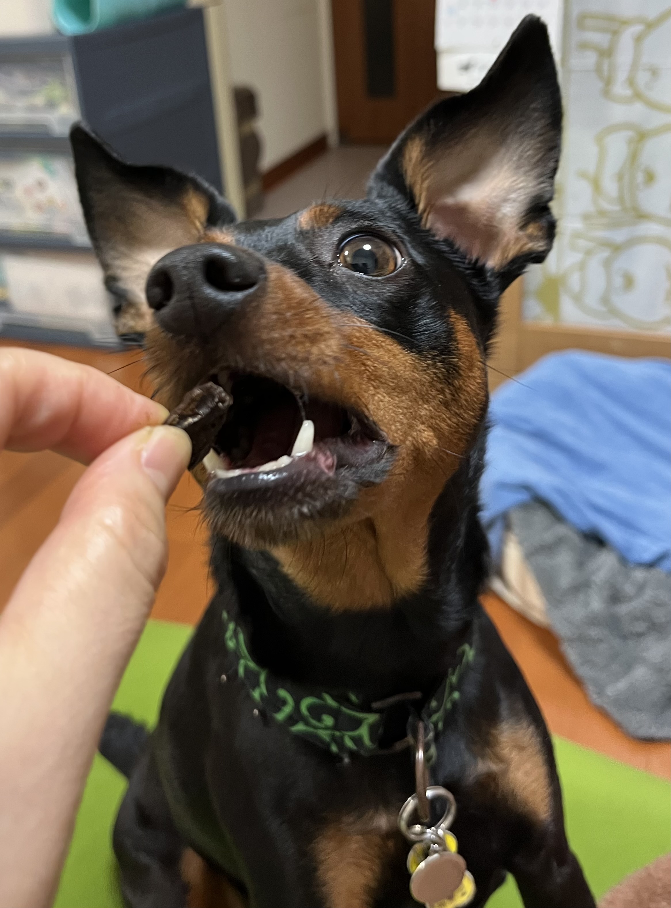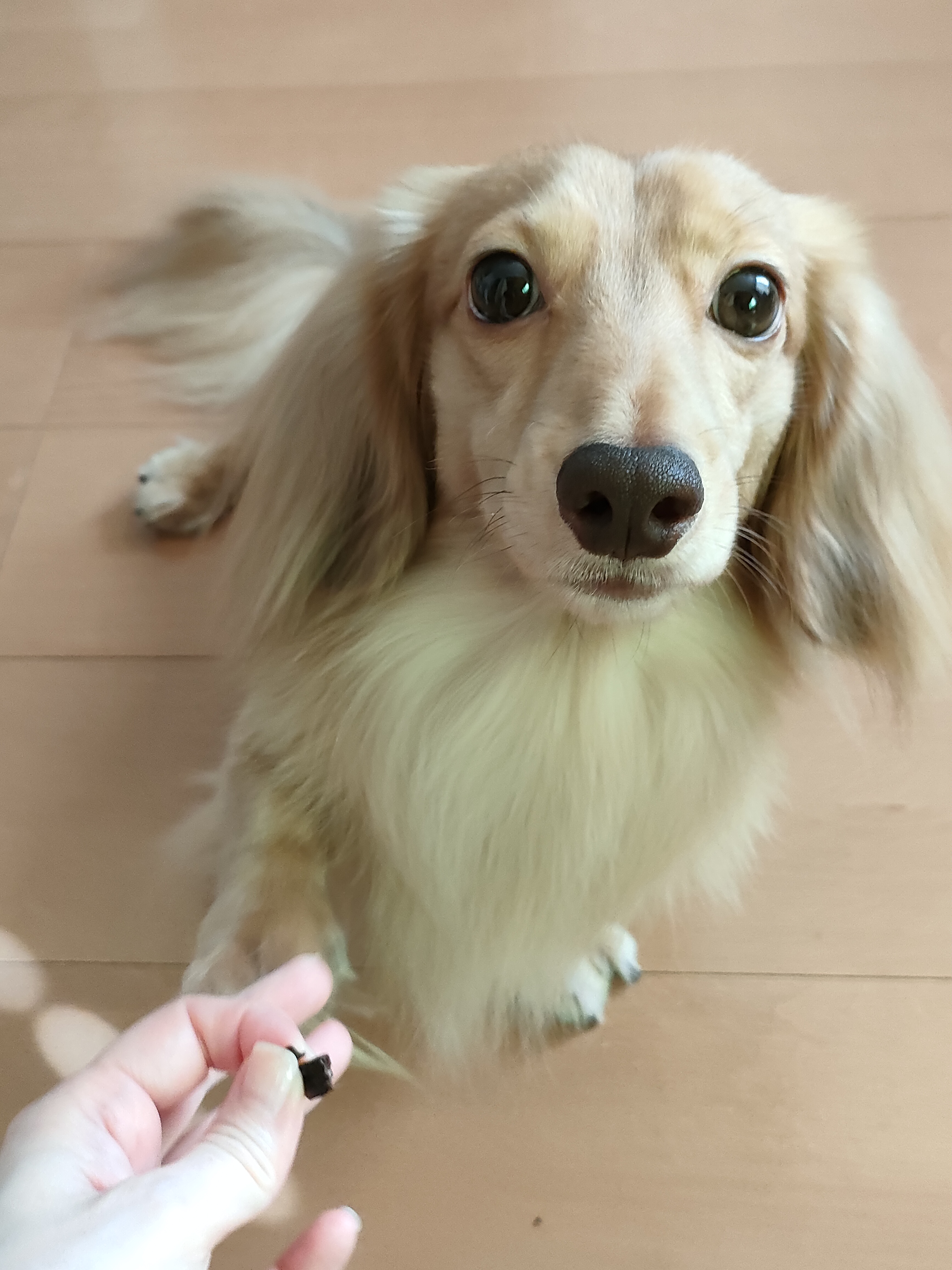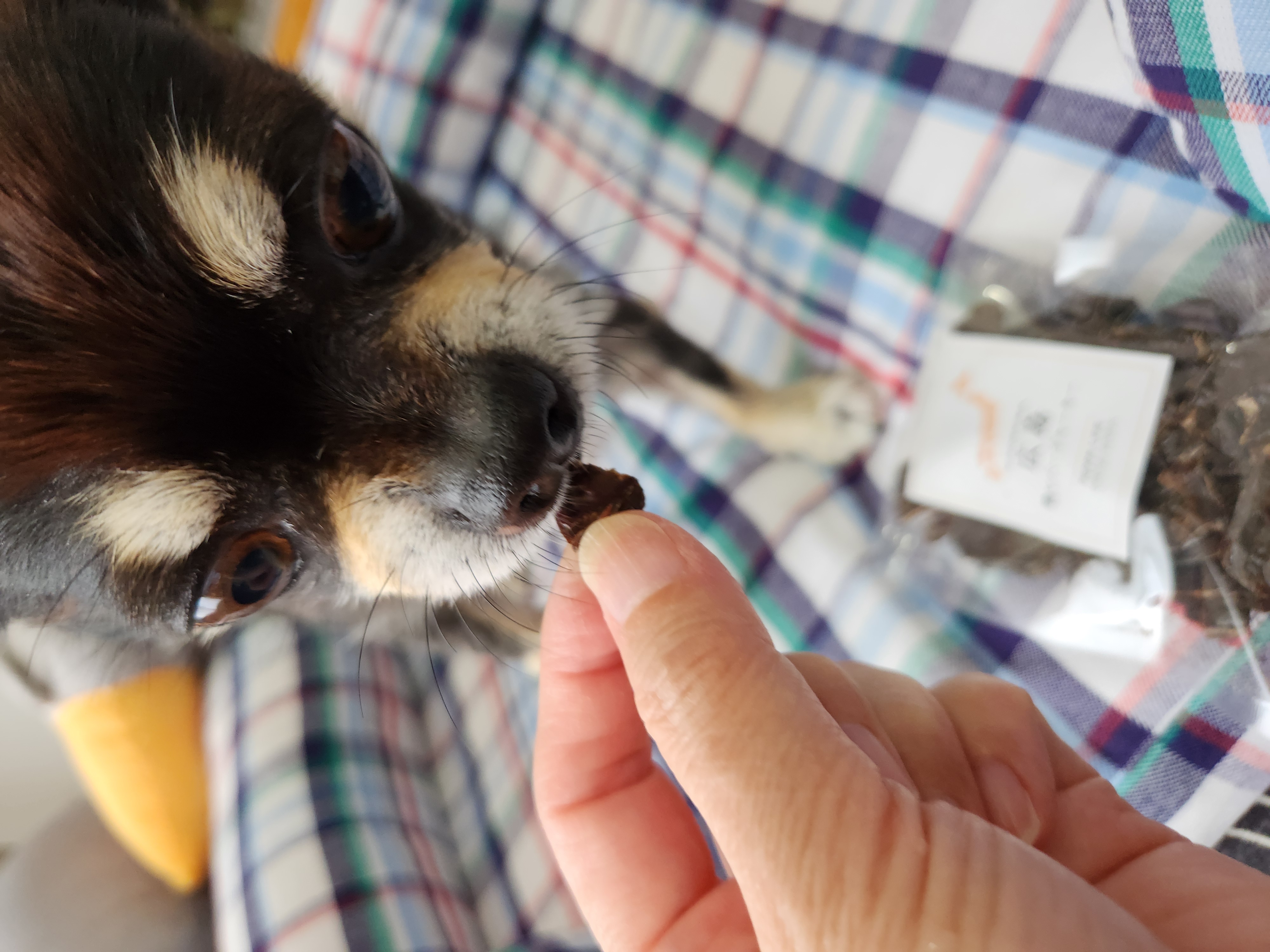 このオヤツを見せると、嫌いな雨でもがんばってお散歩しちゃうぐらい食いつきがいいです!まず袋を開けると、香りがいい。匂いにつられて、ヨダレ垂らして来てくれます 笑。手で簡単に割れるから、年の子にも、そのままあげても安心。私はお散歩の時のご褒美として、小さくしてあげてます。またリピートしたいです。※モニター商品ご利用のご感想です