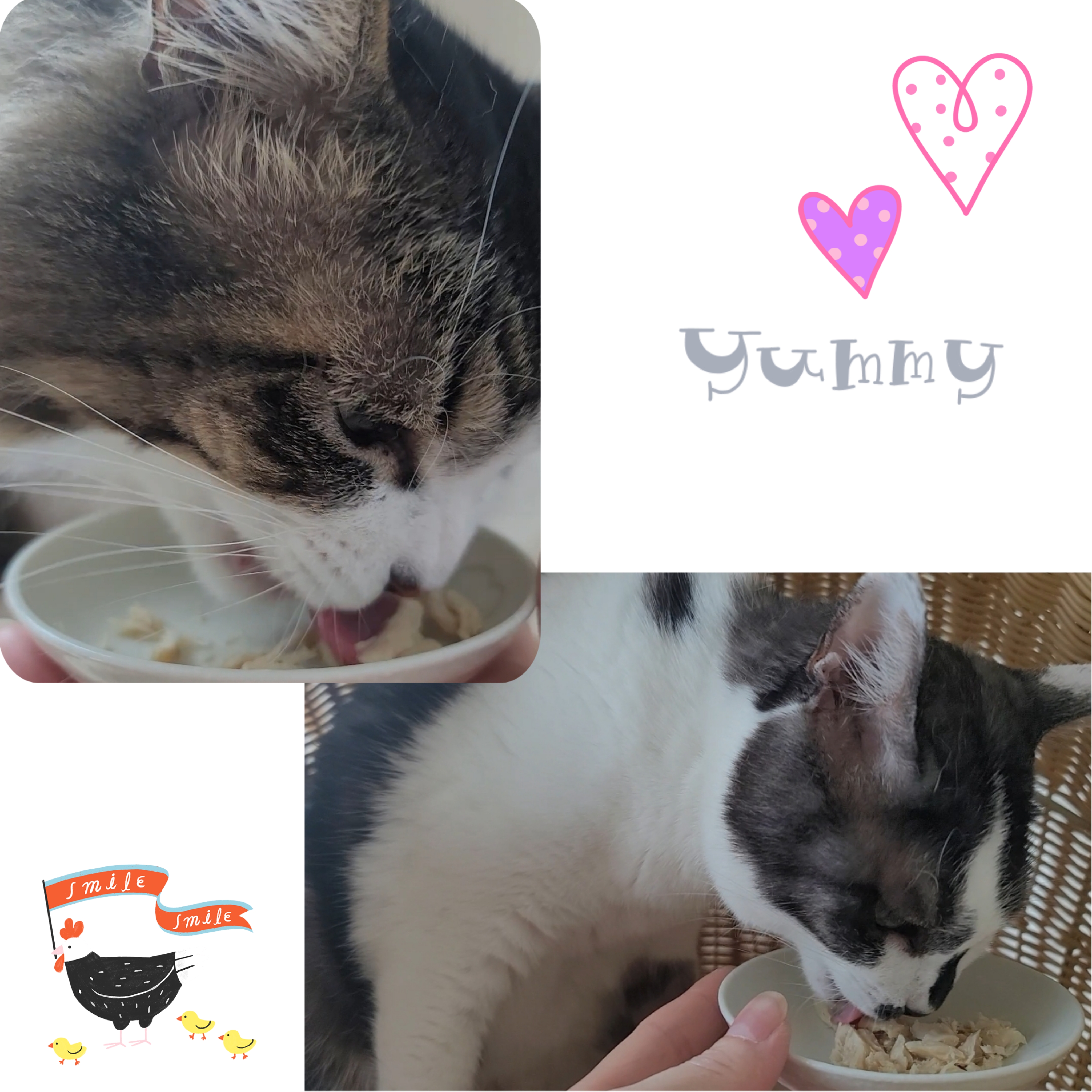 スモークかつおキューブ同様2匹共凄い食い付きであっという間に完食でした! あまり食に興味ない子がガツガツ食べてくれる姿はとても嬉しいです♪ 原材料が安全で、2匹で分けて1度に食べきれる真空小分けの量がありそうでないので、その点が1番嬉しいです(=^ェ^=)※モニター商品ご利用のご感想です