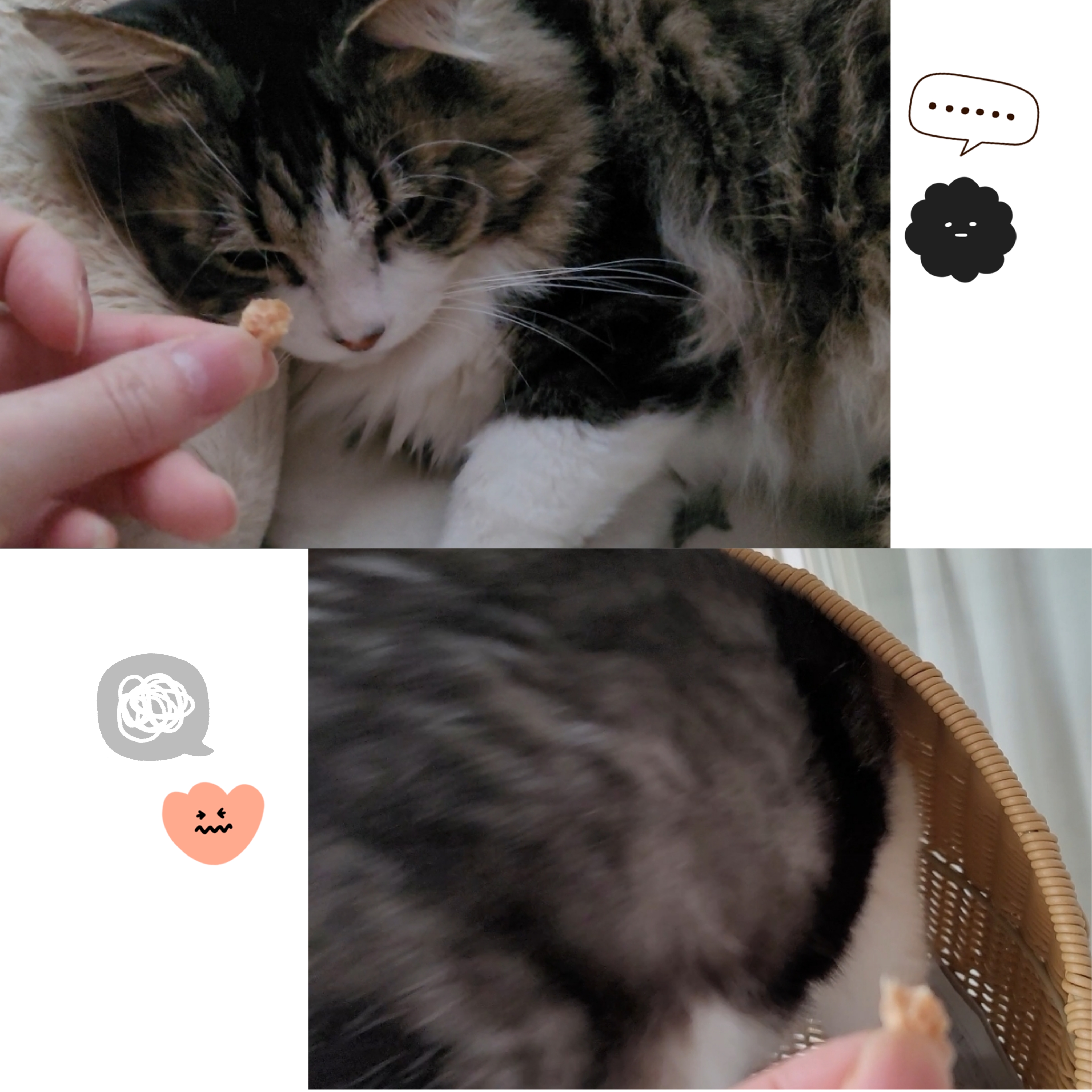 産地表示と原材料の安心感、鮮度が劣化する前にあげきれる少量小分けは嬉しいポイント! かた過ぎず手で折れます(^^) 残念な事にうちのにゃん達には不評でした(;^ω^) 1匹はニオイ嗅いでプイッ=( -з-) もう1匹は口に入れてペッを繰り返し少しだけ食べたけどほぼ食べず...※モニター商品ご利用のご感想です