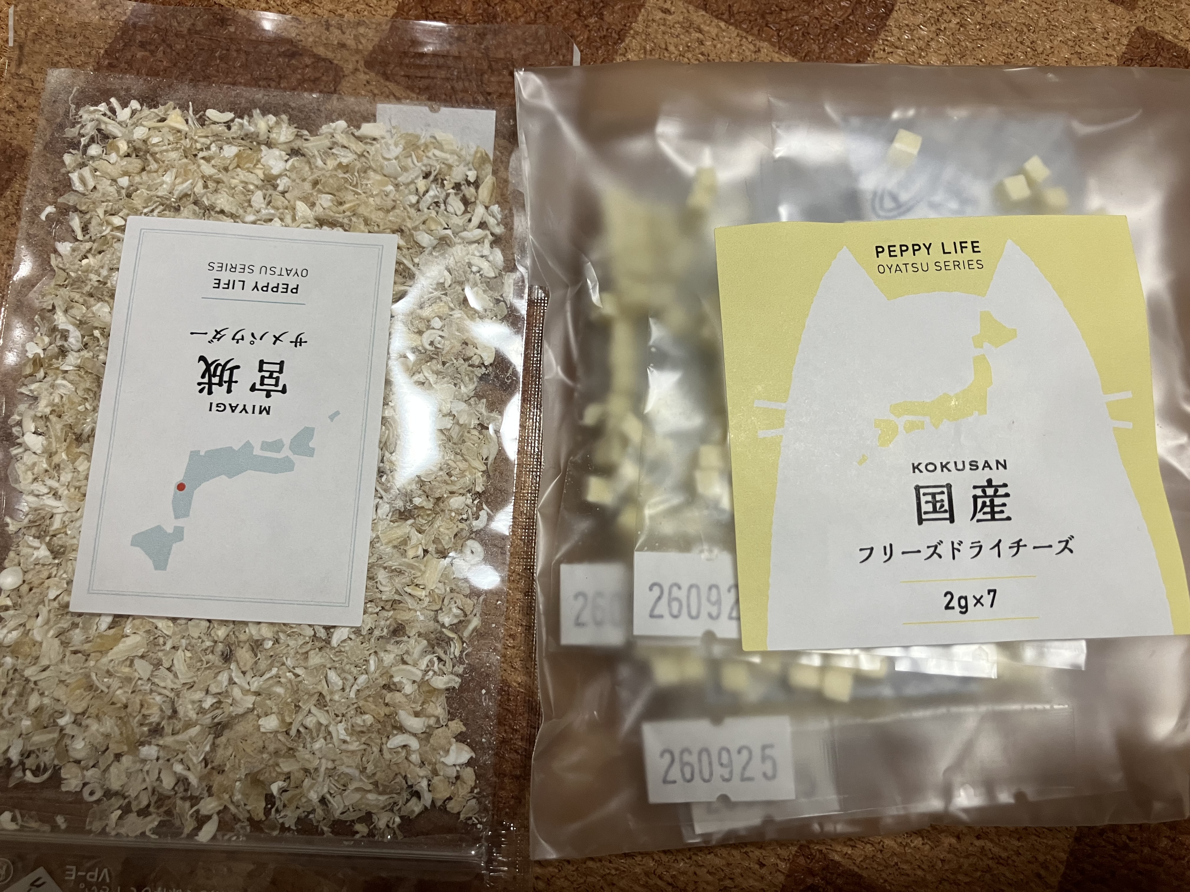 パウダー…のイメージではないサイズ感でした。 欠片かな。日本語で言うと。 パウダー(粉)という名称はちょっと、まぎらわしいです。 サイズ感の比較で、フリーズドライチーズと一緒に撮りました。 ウェットフードに混ぜたけど、顆粒ではないから溶けず、ザラザラのままで、ぬるま湯とドットわんの牛骨スープを足して、嗜好性を高めたつもりが、予想外に一口も口を付けなかった。 肉も魚もたいてい食べる猫で、犬用おやつもサイズや食感が合えば食べるし、魚臭さの強いイワシやサバも食べるから、サメも食べるかと思ったら、においを嗅いだだけでそっぽを向いてしまった。 ハンストした挙げ句、翌日は骨パウダーを入れてないウェット(いつも食べてるアタス)をあげても、入ってるんじゃないかと疑って、なかなか食べなかった。 毛ガニやホタテも食べなくて、ブラックタイガーも好まないから、一般的な魚肉のほぐし身が好きなのかもしれない。 モニターになってない内容で申し訳ないです。※モニター商品ご利用のご感想です