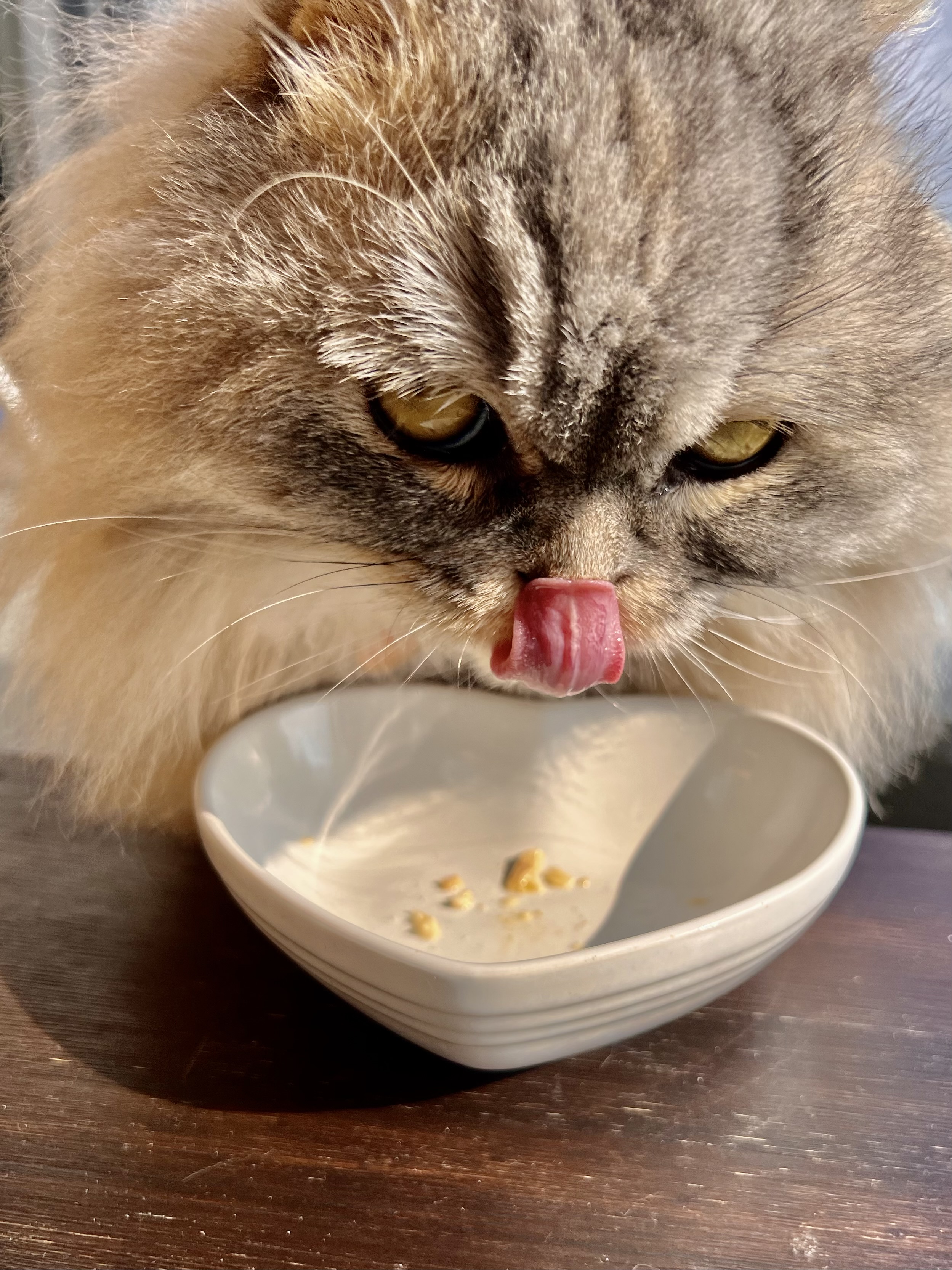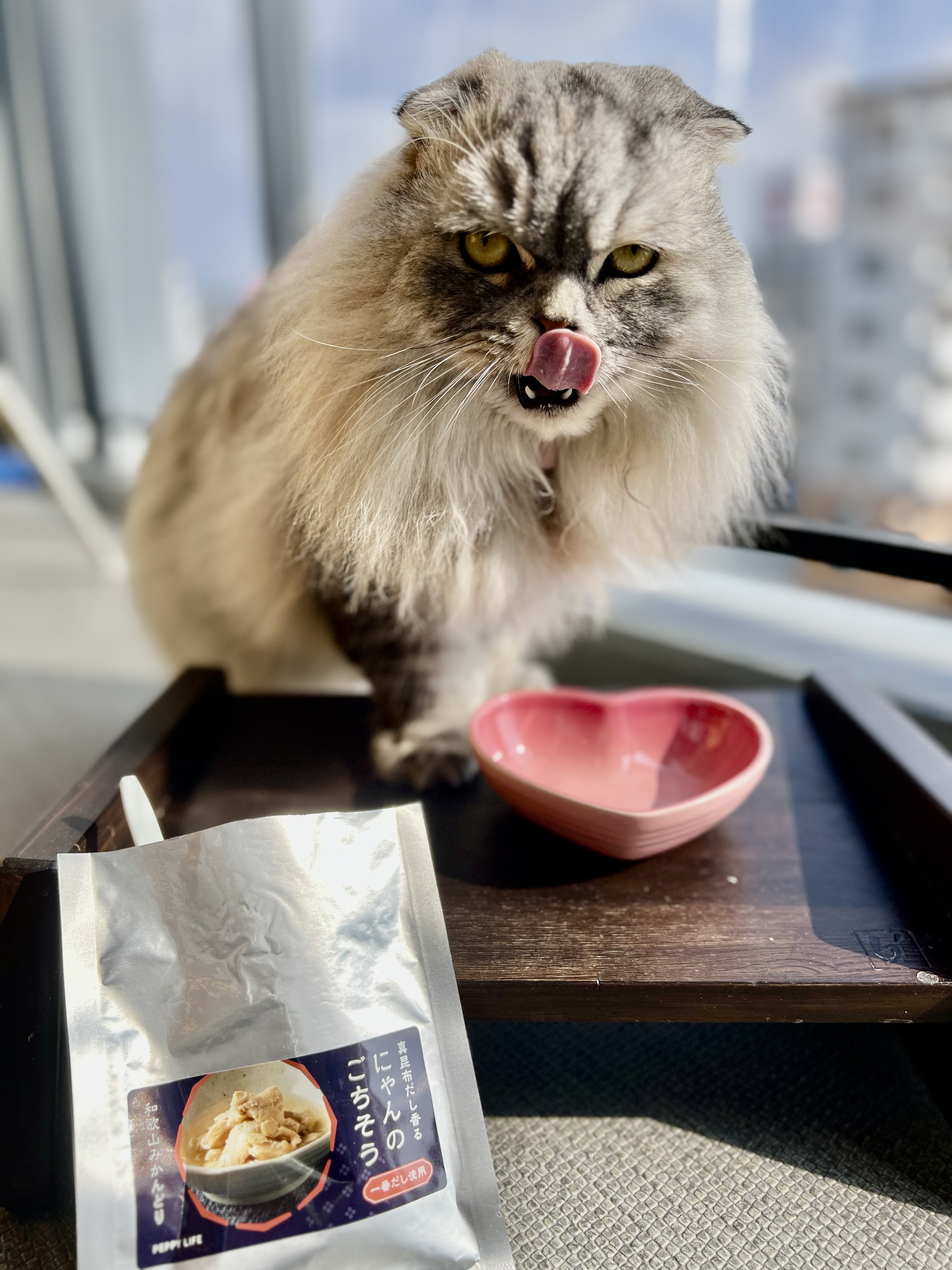 開封した瞬間、飛びついてきました。 「真昆布だし香る」と書いてるので 香りにつられてました。 いい感じにほぐれているので食べやすいようでした。 ちょうだいの催促がすごいです。※モニター商品ご利用のご感想です