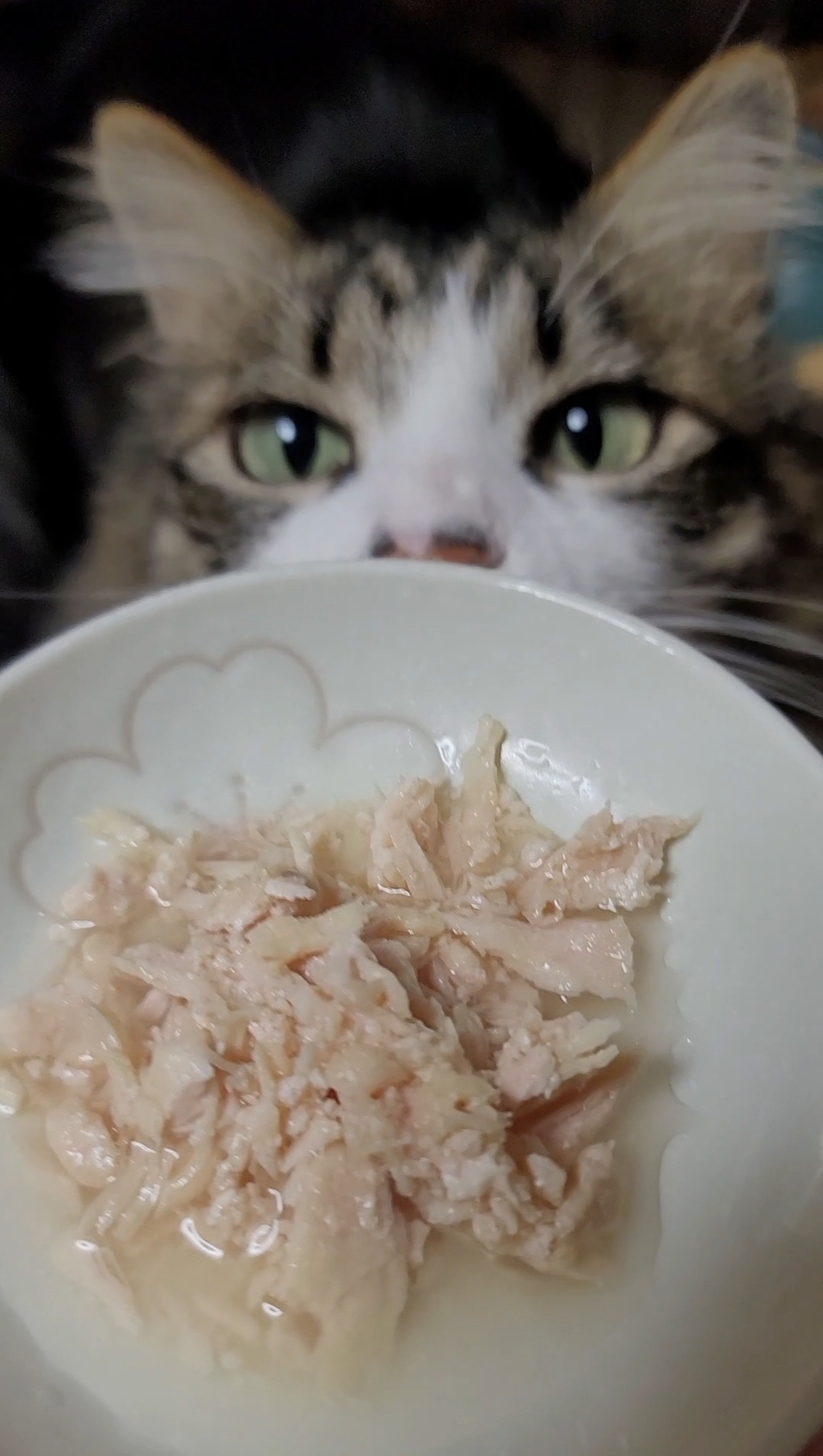 開けると優しいお出汁の香りと素材の香りがします。 2にゃんで分けて使い切れる良い量です(^^) ほぐさないと食べない子の為、ほぐして少し温めてからあげました。 (鮪よりはほぐしやすいかな) 好き嫌い激しめの9才シニア猫は、普段は魚好きなのに鮪は撃沈で、鶏肉はすぐ食べ始め、1/3程食べました(=^ェ^=) 7才のほぼ何でも食べる猫は、鮪同様最初から最後まで止まらずがっついて美味しそうに食べました(=^ェ^=) 鮪も鶏肉も、スープが一緒に入っているので、水分も摂れてとっても良いと思います! 《写真は内容量の1/2です。》※モニター商品ご利用のご感想です