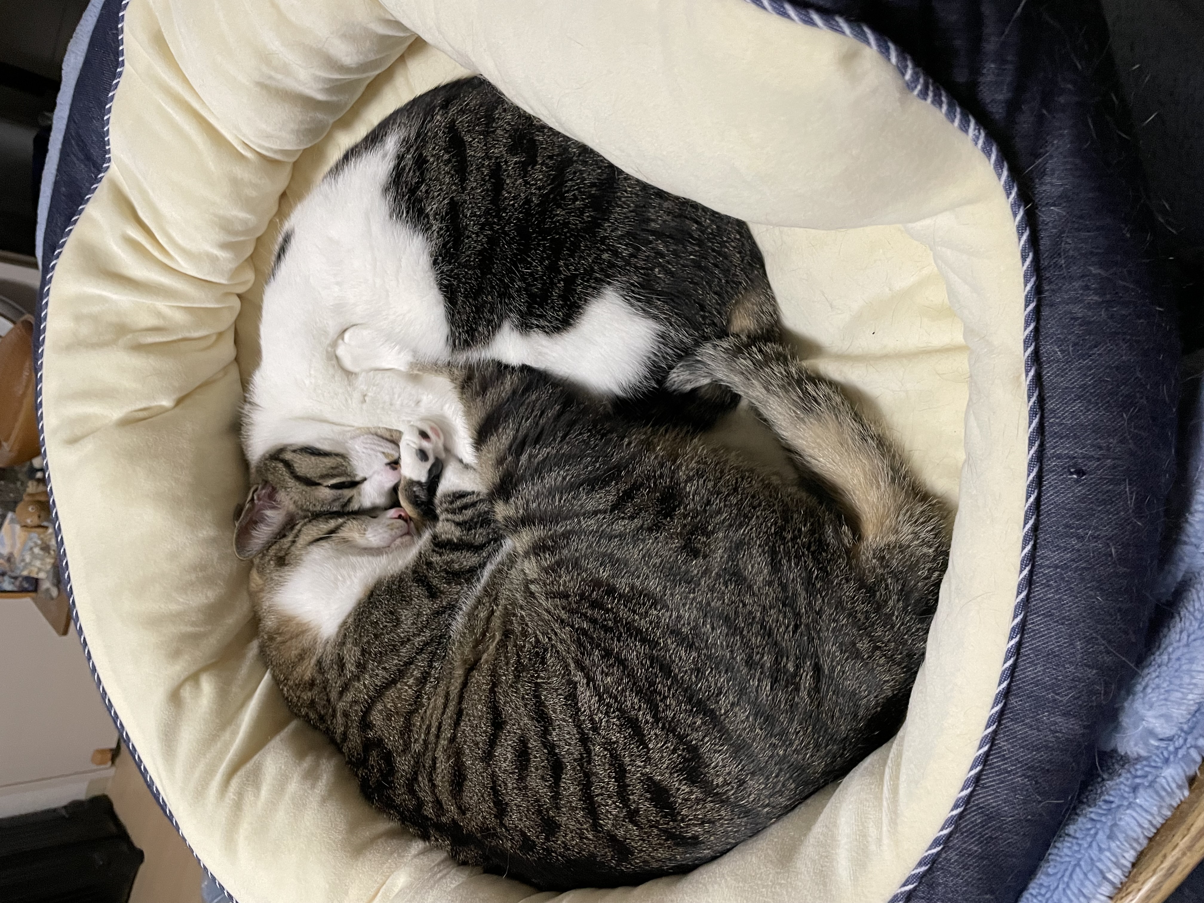 眠れる場所は他にもいくつも置いてますが、熟睡する時は、このお気に入りのベットで仲良く2匹で眠ります����