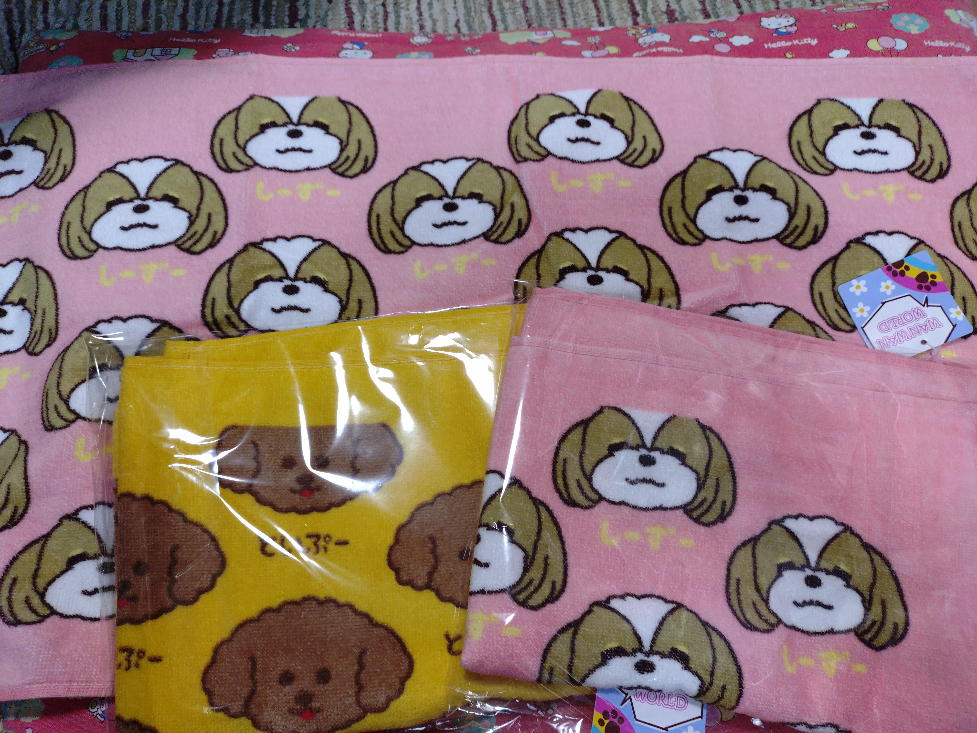 色々なワンコの種類があり、サイズもフェイスタオルとして充分ある。厚さは薄いが逆に使い勝手が良い。なんと言っても、お手頃価格で、今回は家族1枚ずつと、別の犬種と合わせて、ちょっとした散歩仲間へのプレゼントとして購入した。